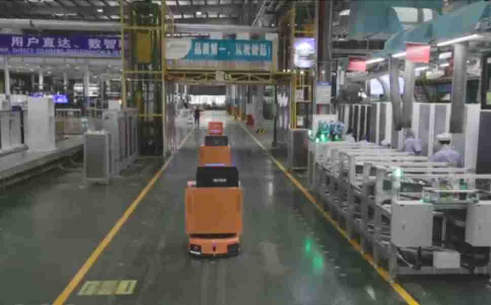 为车载冰箱物流配送打造的智能解决方案,,,包含产中物流通过潜伏举升AMR搬运至线边,,产后成品物流智能仓储,,流程包含产中物流智能齐套入库,,线边安灯叫料AMR智能配送至线边,,,成品入库、、、、出库,,通过无人堆高车机器人,,,,智能仓储管理替代人工作业管理,,,,实现更高存储、、更高效率、、、、更具柔性化的解决方案。。。。